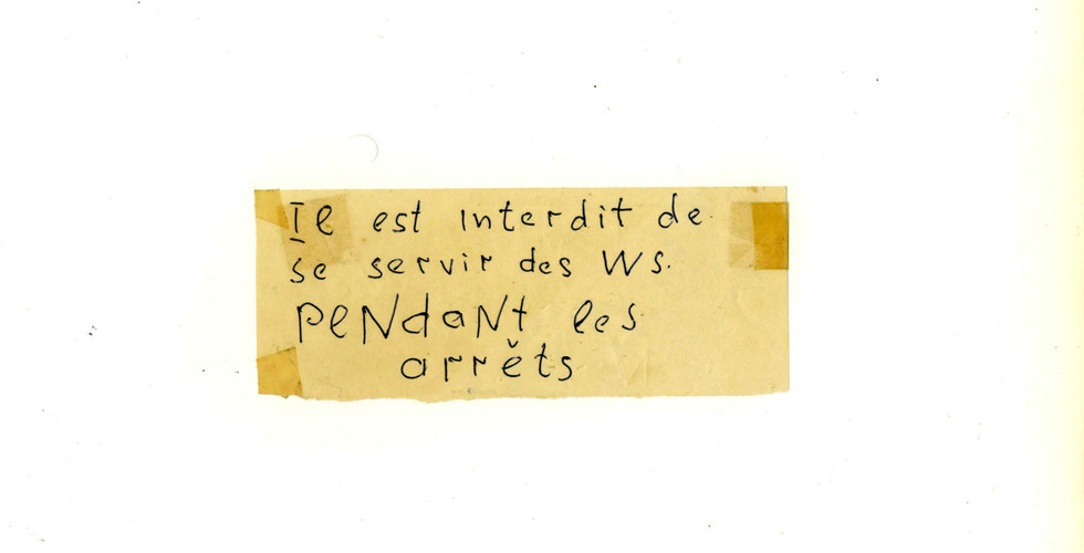 Au moment de quitter le train, nous avons rassemblé les bouts de papier, et parfois d'autres écrits et dessins dont la trace cheminait également de wagon en wagon en empruntant le même "Itinéraire"